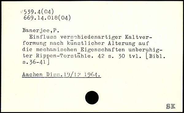 Einfluss verschiedenartiger Kaltverformung nach künstlicher Alterung auf die mechanischen Eigenschaften unberuhigter Rippen-Torstähle.