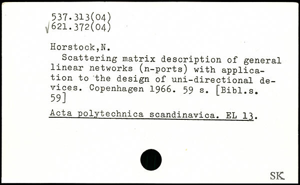 Scattering matrix description of general linear networks (n-ports) with application to the design of uni-directional devices.