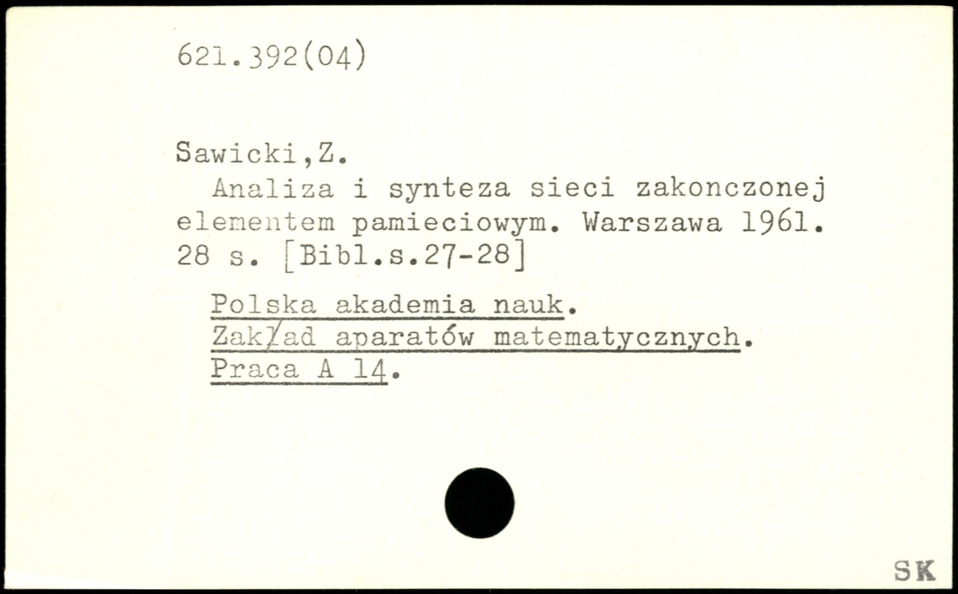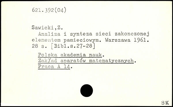 Analiza i synteza sieci zakonczonej elenentem pamieciowym.