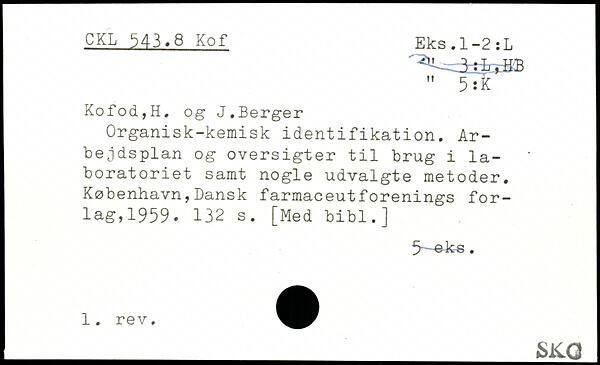 Organisk-kemisk identifikation. Arbejdsplan og oversigter til brug i laboratoriet samt nogle udvalgte metoder.