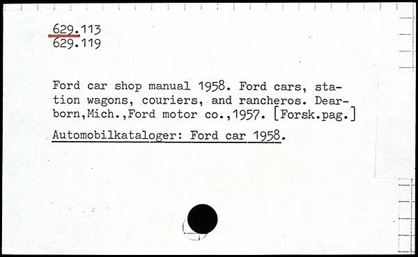 Ford car shop manual 1958. Ford cars, station wagons, couriers, and rancheros.