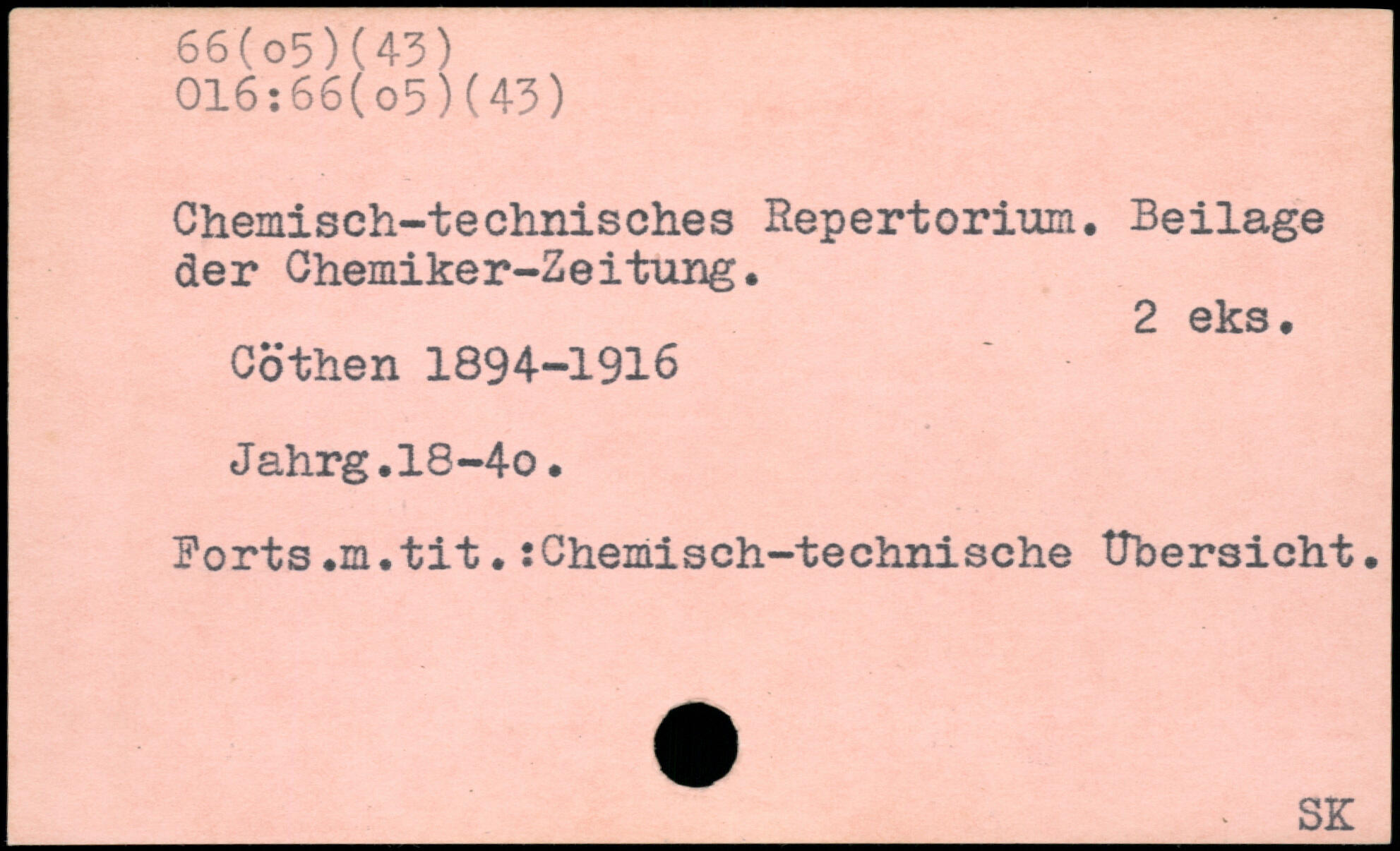 Chemisch-technisches Repertorium. Beilage der Chemiker-Zeitung. 2 @ks Cöthen 1894-1916 Jahrg.l8-4o. Forts.m.tit.:Chemisch-technische Übersicht.