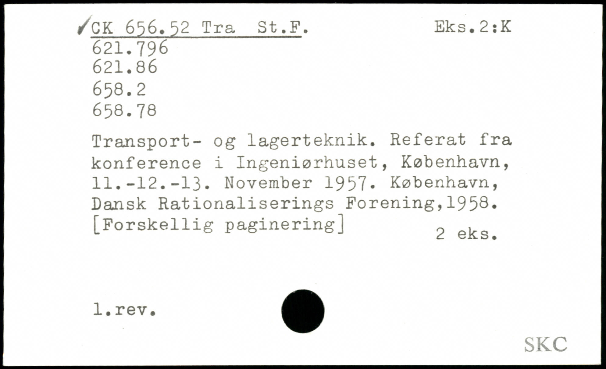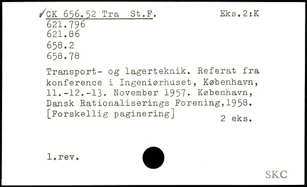 Transport- og lagerteknik. Referat fra konference i Ingeniørhuset, København, 11.-12.-13. November 1957.