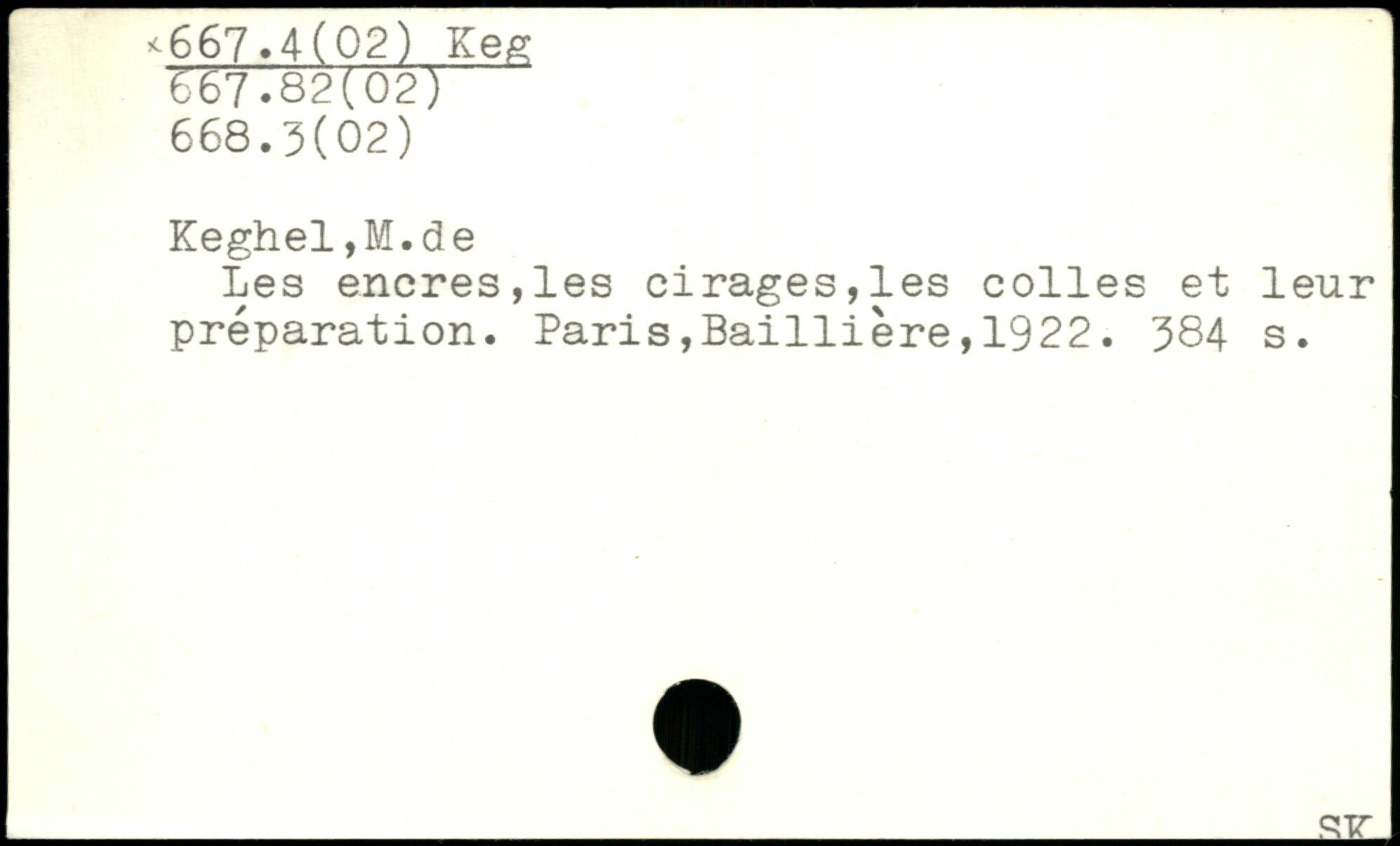 Kegh.el,M.de Les encres,les ci rages,les colles et leur préparation. Paris,Ba1111ère,1922.