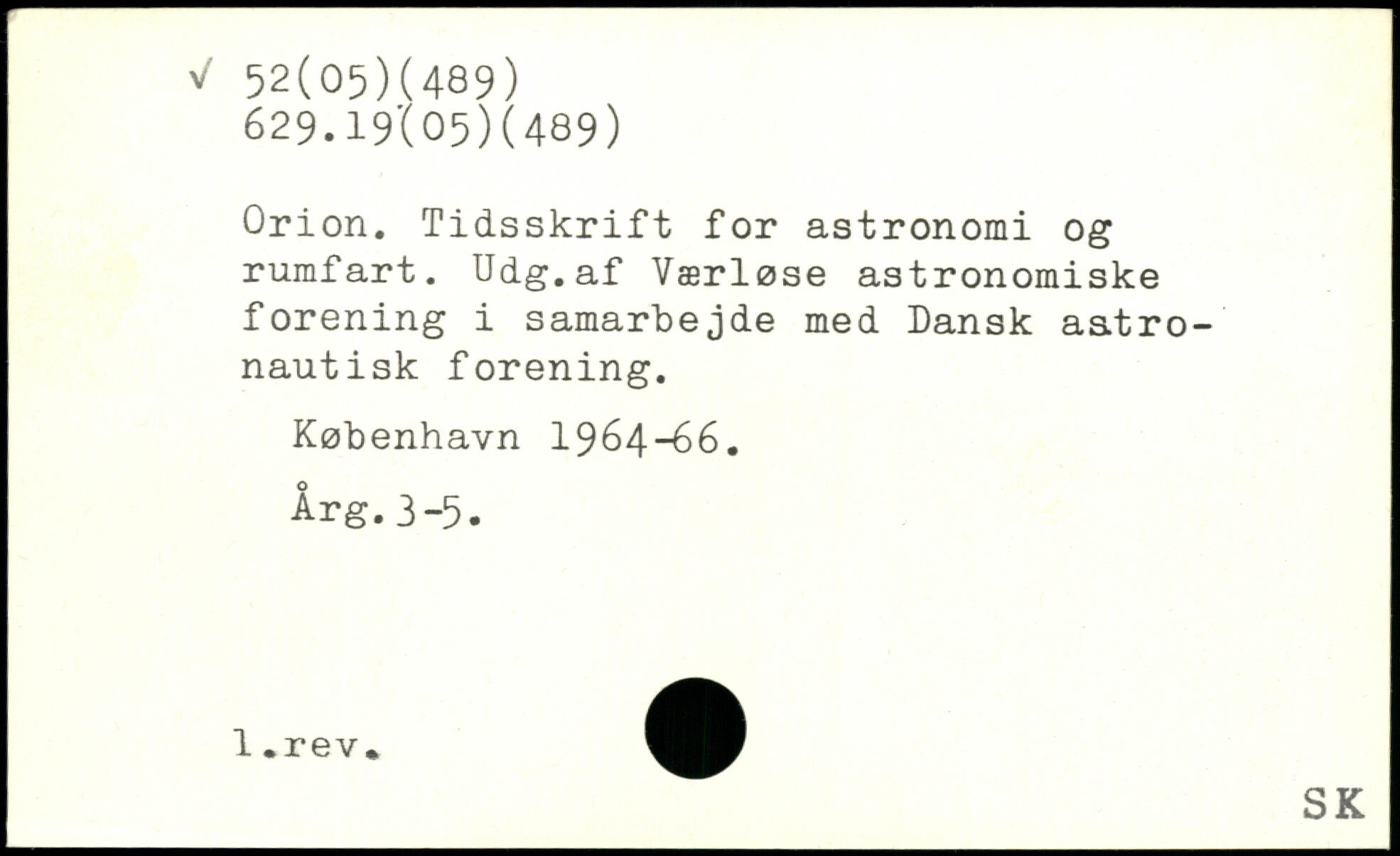 Orion. Tidsskrift for astronomi og rumfart. Udg.af Værløse astronomiske forening i samarbejde med Dansk astronautisk forening.