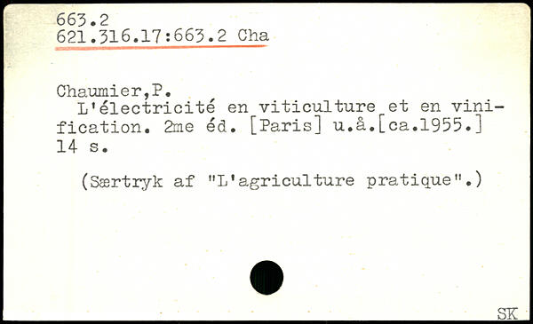 L’électricité en viticulture et en vinification. 2ne éâ. [Paris] u.â.[ca.1955.]