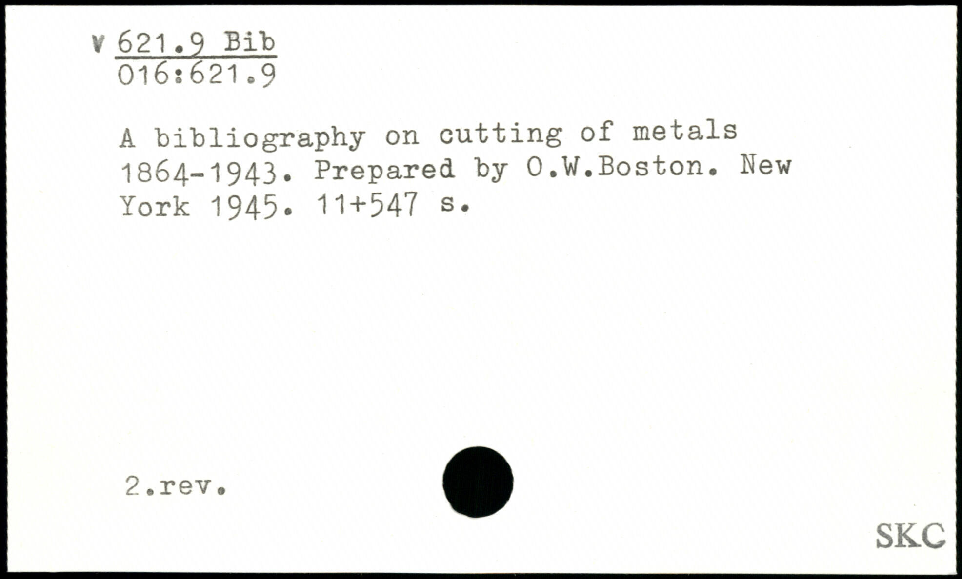 UDK: 621.9 Bib, 9