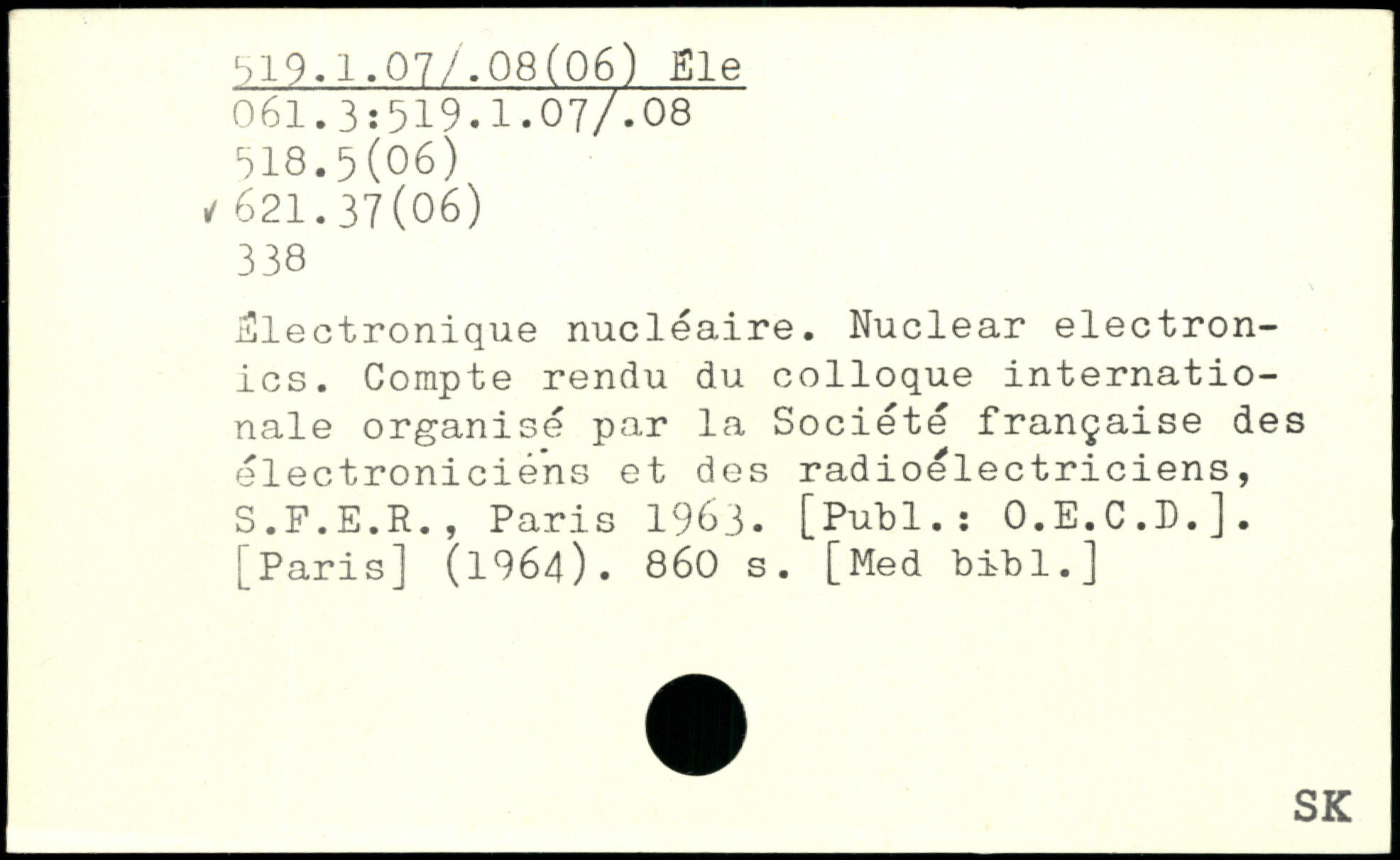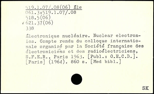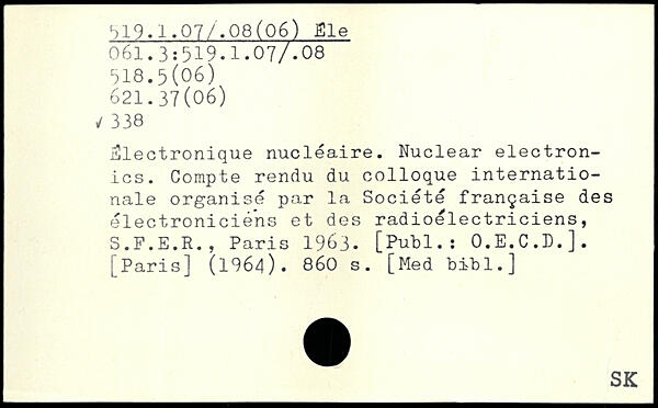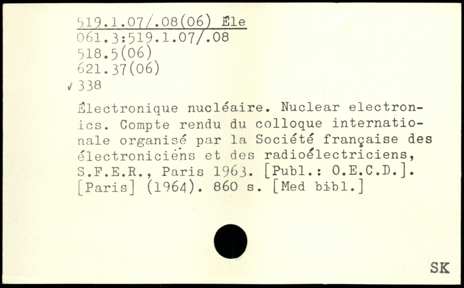 électronique nucléaire. Nuclear electronics. Compte rendu du colloque internationale organisé par la Société française des électroniciens et des radioélectriciens, S.F.E.R.