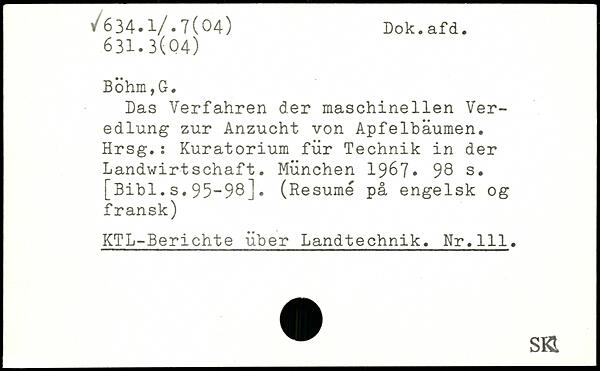 Das Verfahren der maschinellen Veredlung zur Anzucht von Apfelbäumen. Hrsg.: Kuratorium für Technik in der Landwirtschaft.