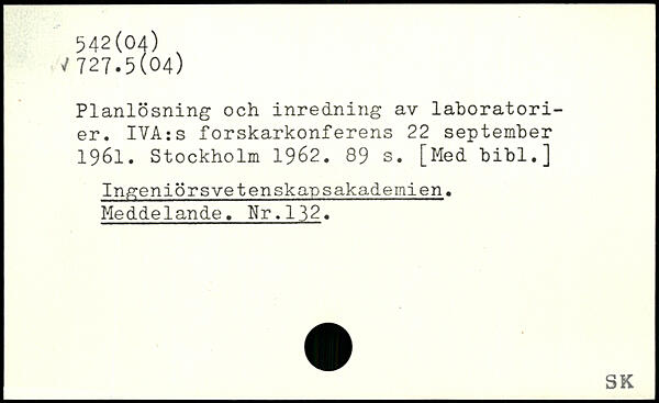 Planlösning och inredning av laboratorier. IVA:s forskarkonferens