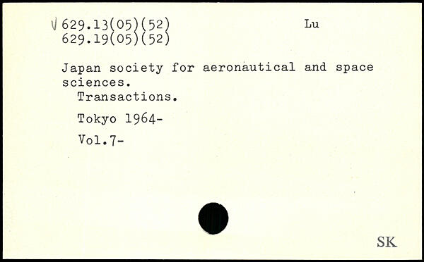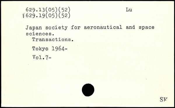Japan society for aeronautical and space sciences. Transactions.