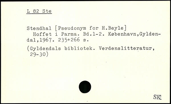 Stendhal [Pseudonym for H.Beyle] Hoffet i Parma.