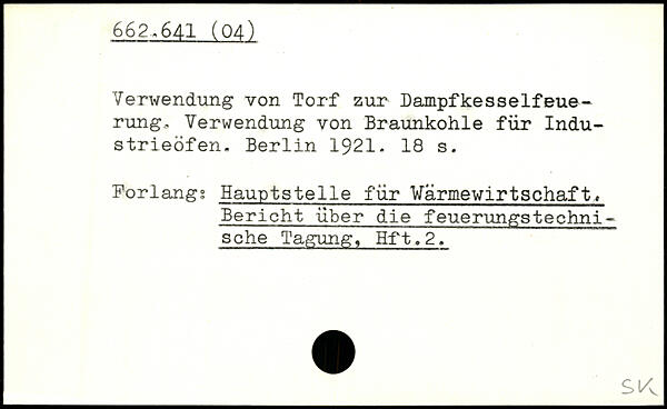 Verwendung von Torf zur Dampfkesselfeue-rung. Verwendung von Braunkohle für Industrieöfen.