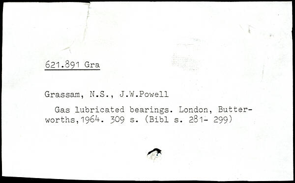Grassam, N.S., J.W.Powell Gas lubricated bearings. London, Butter-worths, 196^.