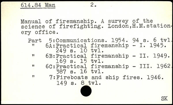 Manual of firemanship. A survey of the science of firefighting. London,H.M.stationery office. Part 5:Communications. 1954.