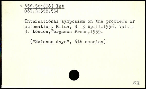 International symposium on the problems of automation, Milan, 8-13 April,1956, Volol-3o