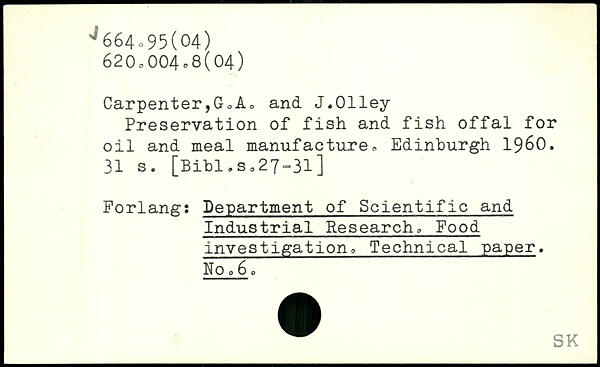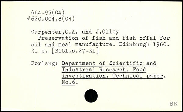 Preservation of fish and fish offal for oil and meal manufacture, Edinburgh 1960.