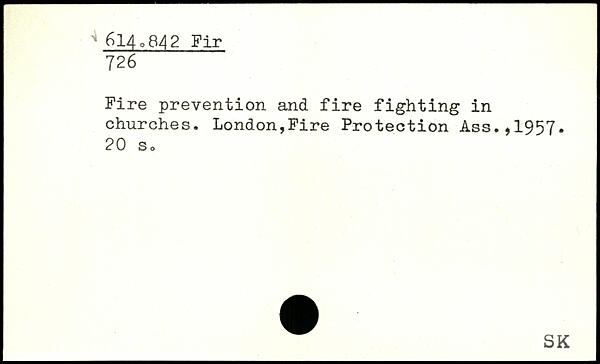 Fire prevention and fire fighting in churches. London,Fire Protection Ass..1957
