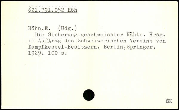Die Sicherung geschweisster Nähte. Hrsg, im Auf.trag des Schweizerischen Vereins von Dampfkessel-Besitzern.