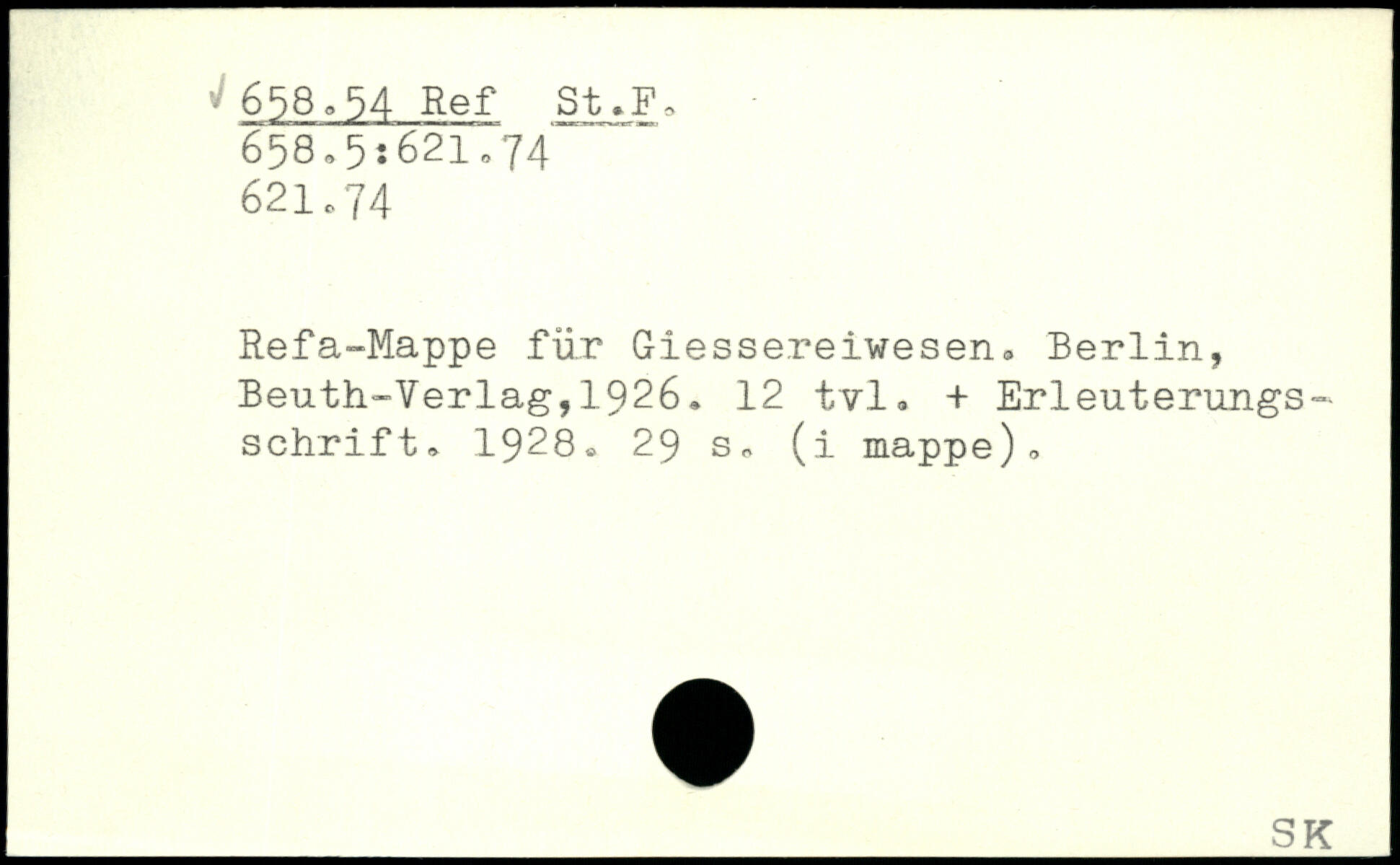 Refa-Mappe für Giessereiwesen.