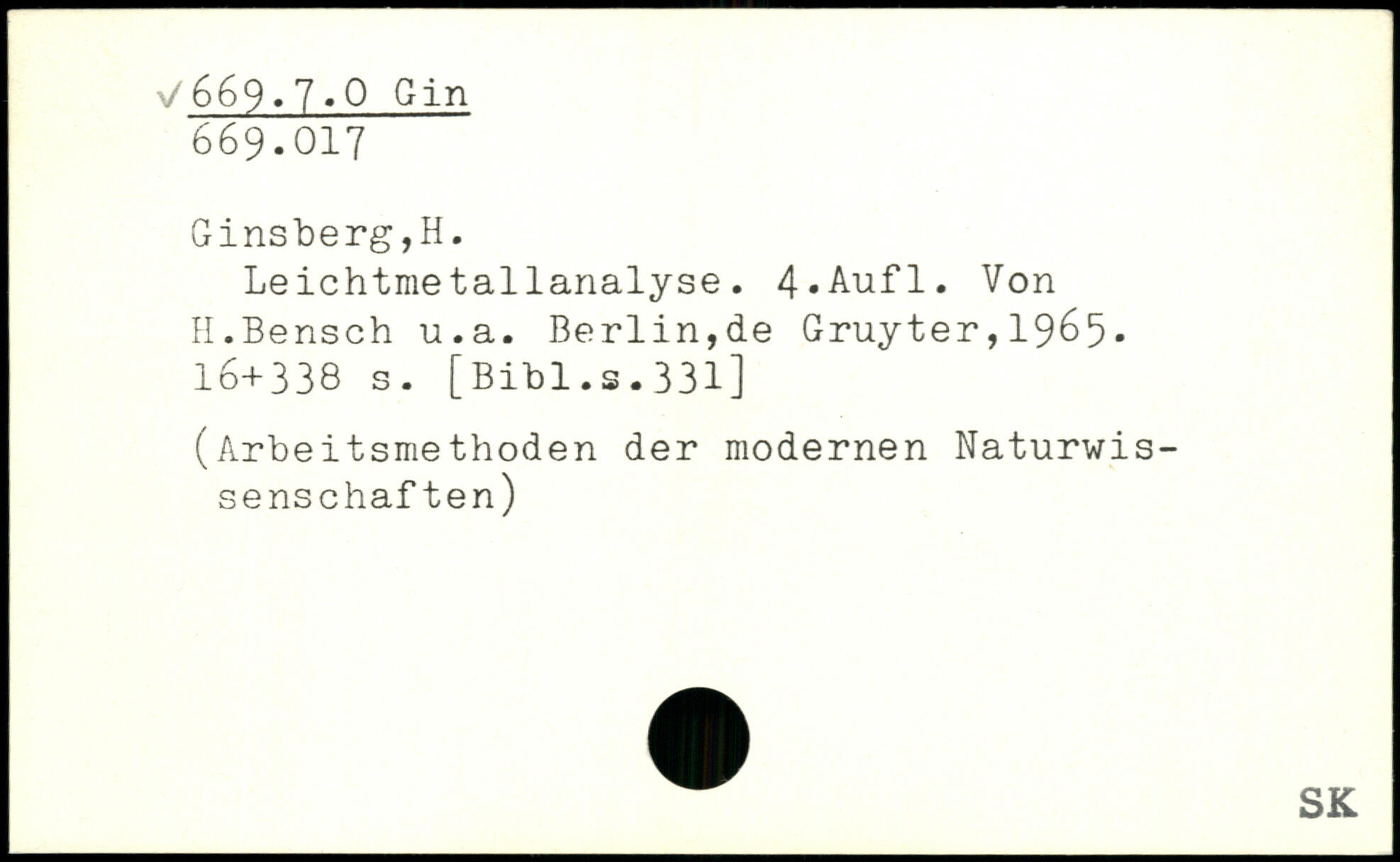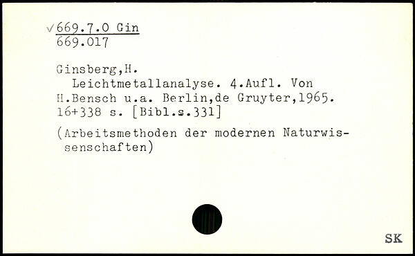 Leichtmetallanalyse. 4>Aufl. Von II.Bensch u.a. Berlin,de Gruyter, 1965-