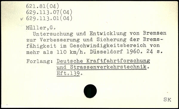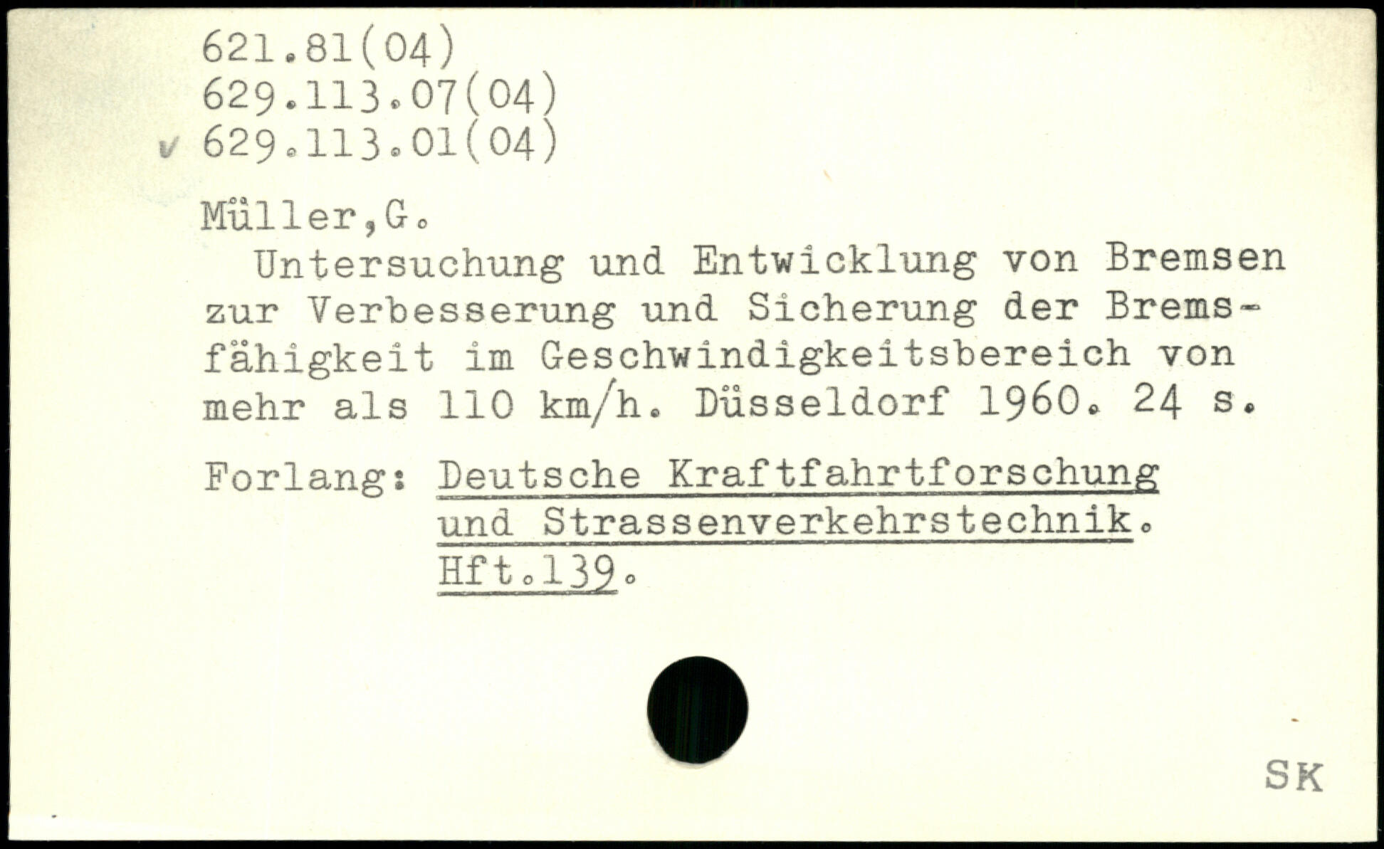 Untersuchung und Entwicklung von Bremsen zur Verbesserung und Sicherung der Bremsfähigkeit im Geschwindigkeitsbereich von mehr als 110 km/h. Düsseldorf 1960.