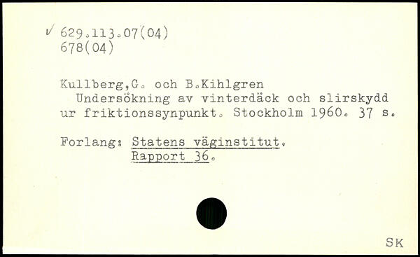 Kullberg,G0 och B,Kihlgren Undersökning av vinterdäck och slirskydd ur friktionssynpunkto