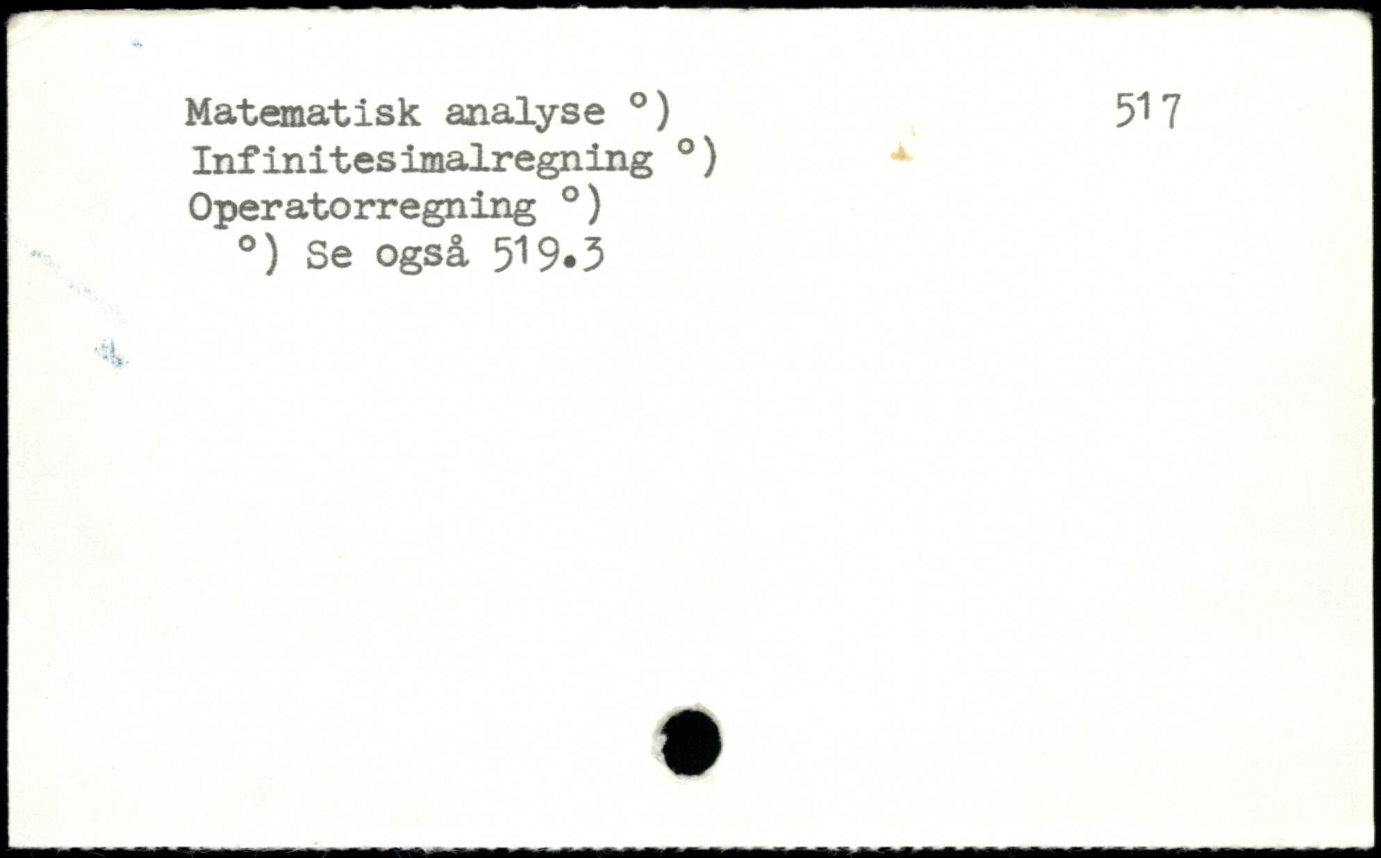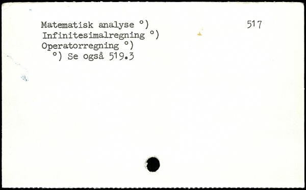 Matematisk analyse .) 517 Infinitesimalregning .) Operatorregning .) .) Se også 519.3