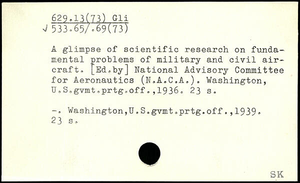 A glimpse of scientific research on fundamental problems of military and civil aircraft, [Edeby] National Advisory Committee for Aeronautics (N.A.C.A.). Washington, U,S0gvmtoprtg,off.,1936