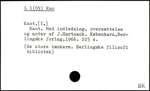 Kant. Med indledning, oversættelse og noter af J.Hartnack.