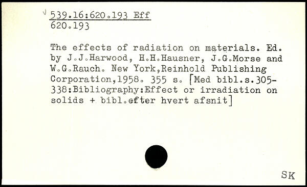 The effects of radiation on materials. Ed. "by JoJoHarwood, HoH,Hausner, JoG.Morse and