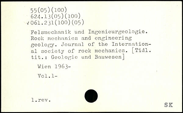 Rock mechanics and engineering geology. Journal of the International society of rock mechanics. [Tidl. tit.: Geologie und Bauwesen]