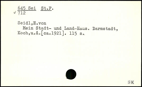 Mein Stadt- und Land-Haus. Harmstadt, Koch, u., ä.[ca,1921].
