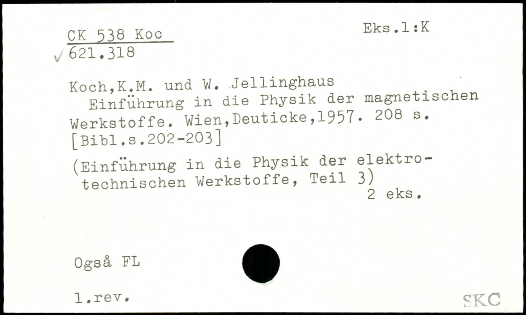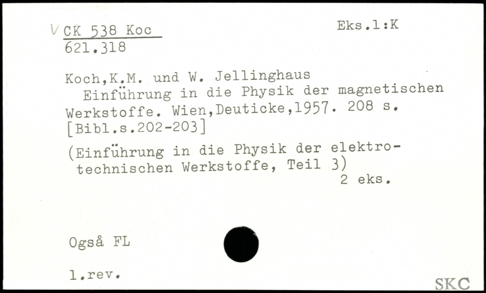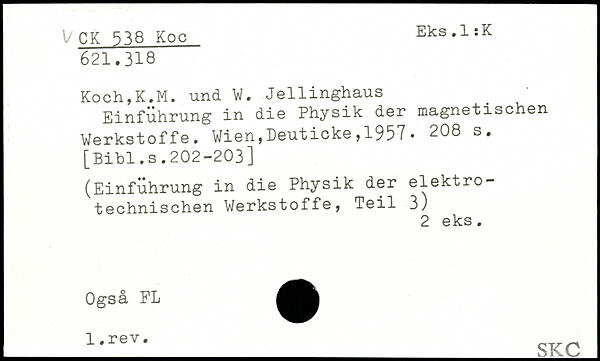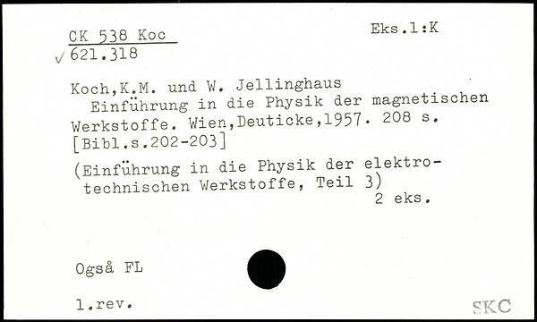 Koch,K.M. und W. Jellinghaus ' Einführung in die Physik der magnetischen Werkstoffe.