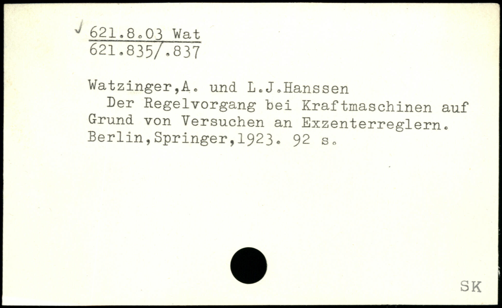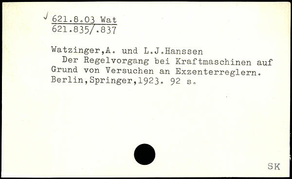 Watzinger,A, und L.J.Hanssen Der RegelVorgang bei Kraftmaschinen auf Grund von
