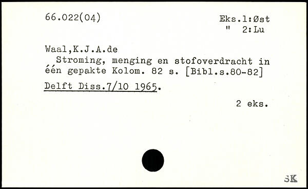 ^Stroming, menging en stofoverdracht in een gepakte Kolom.