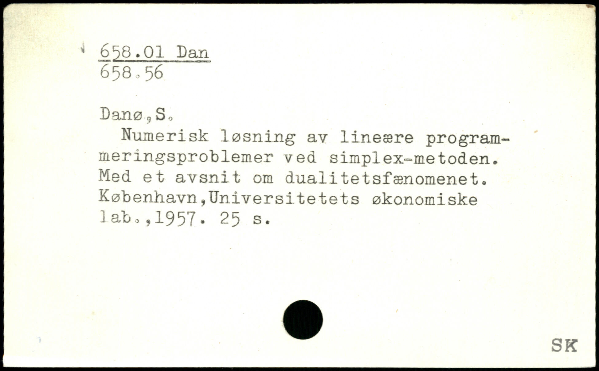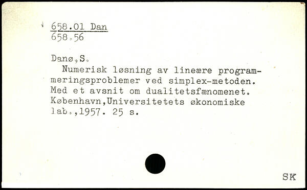 Numerisk løsning av lineære program-meringsproblemer ved simplex-metoden. Med et avsnit om duaiitetsfænomenet. København ,Universitetets økonomiske lab,,1957.
