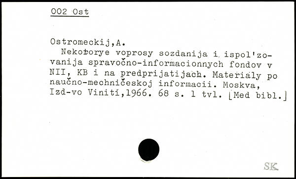 Nekotorye voprosy sozdanija i. ispol'zo-vanija spravocno-informacionnych fondov v NH, KB i na predprijatijach. Materialy po naucno-mechniceskoj informacii.
