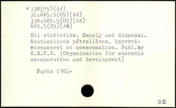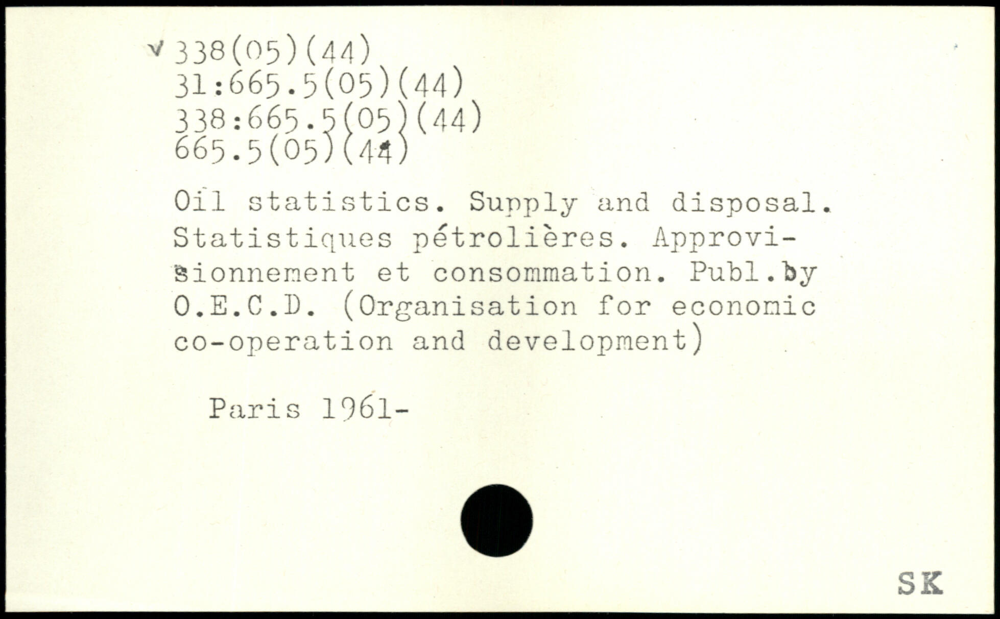 Oil statistics. Supply and disposal. Statistiques pétrolières. Approvisionnement et consommation. Publ. O.E.C.D. (Organisation for economic co-operation and development)