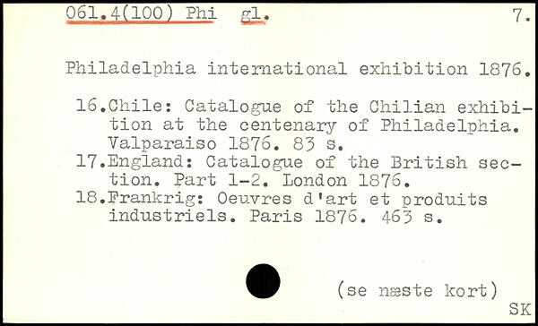 Philadelphia international exhibition 1876. 16. Chile: Catalogue of the Chilian exhibition at the centenary of Philadelphia. Valparaiso 1876.