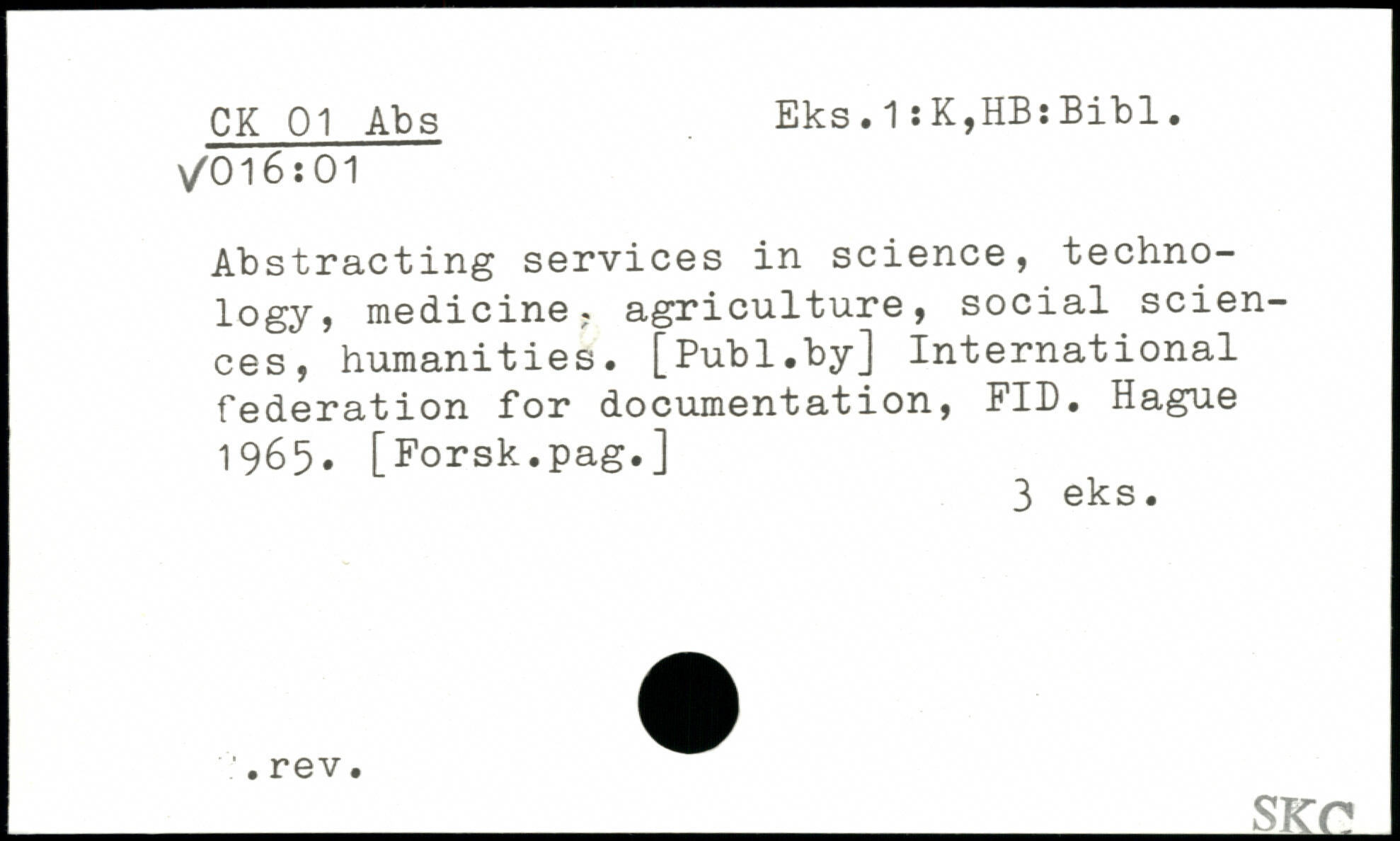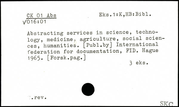 Abstracting services in science, technology, medicine? agriculture, social sciences, humanities.