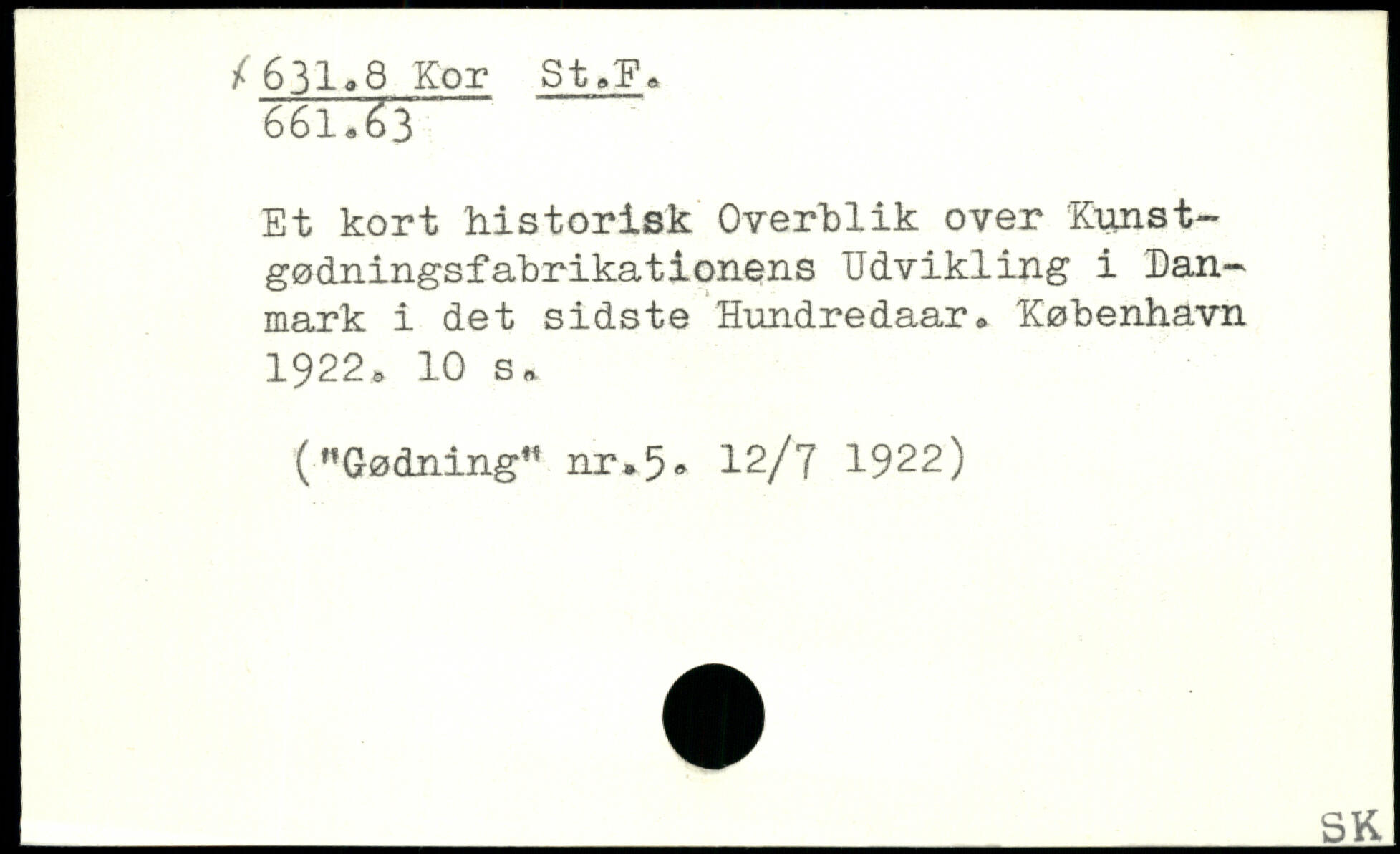 Et kort historisk Overblik over Kunstgødningsfabrikationens Udvikling i Danmark i det sidste Hundredaar.
