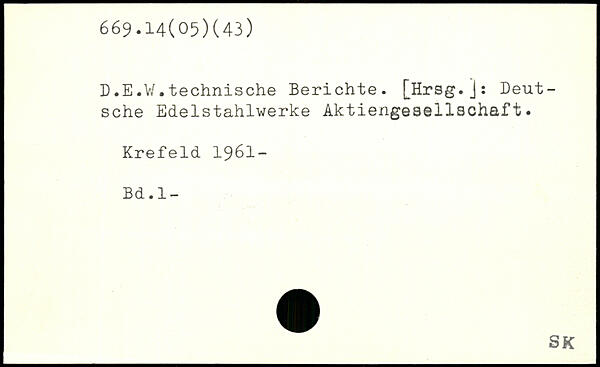 D.E.V.technische Berichte. [Hrsg.]: Deut-sehe Edelstahlwerke Aktiengesellschaft. Krefeld 1961- Bd.l-
