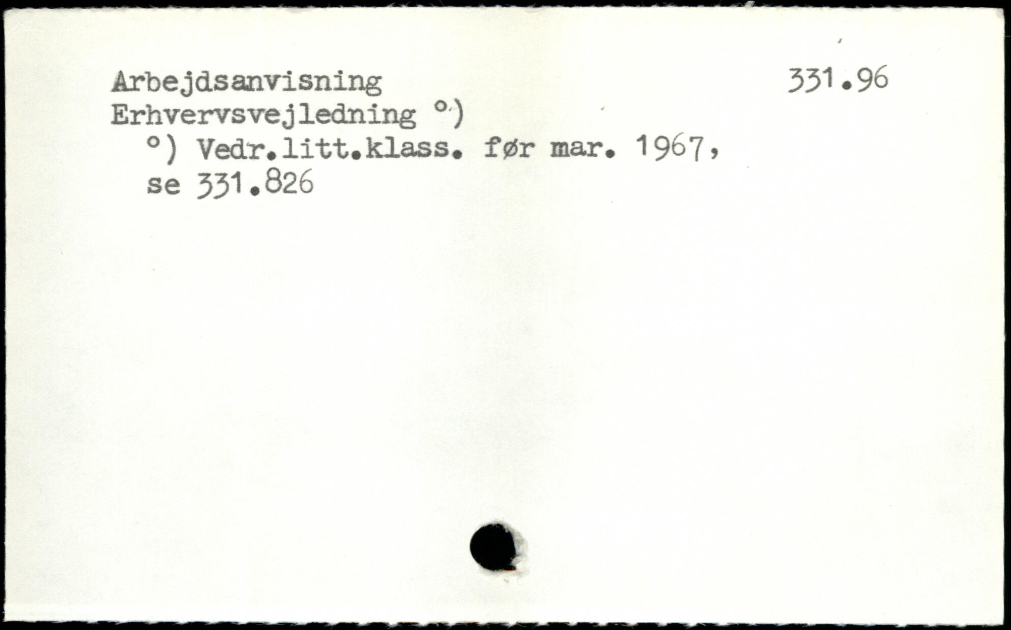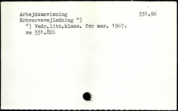 Erhvervsvejledning .) .) Vedr.litt.klass. før mar. 1967) se 331.826