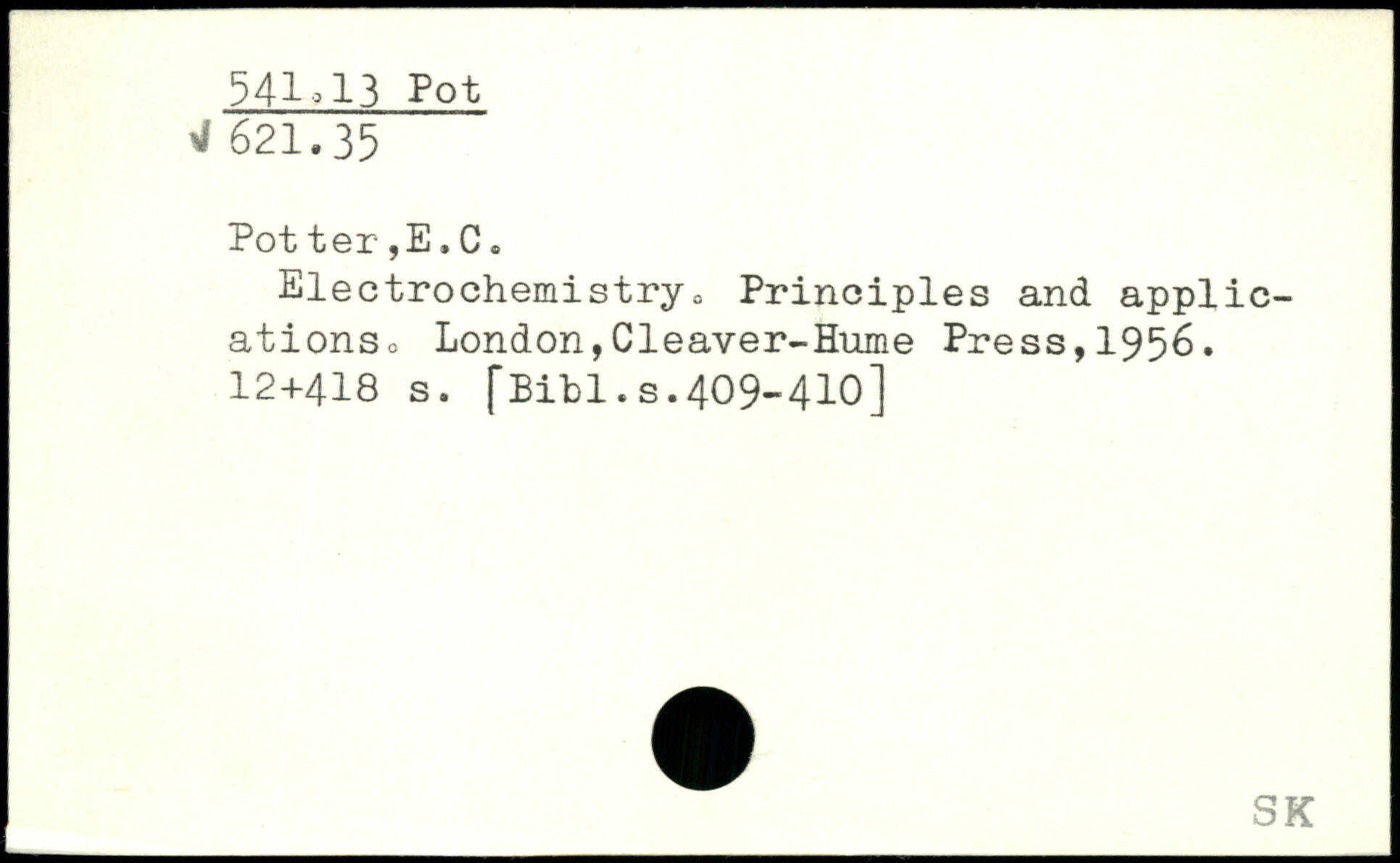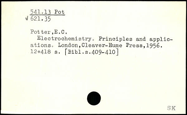 Electrochemistry, Principles and applications, London,Cleaver-Hume Press,1956. 12+418 s. fBibl.s.409-410]