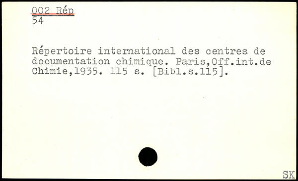 Répertoire international des centres de documentation chimique. Paris,Off.int.de Chimie,1935.