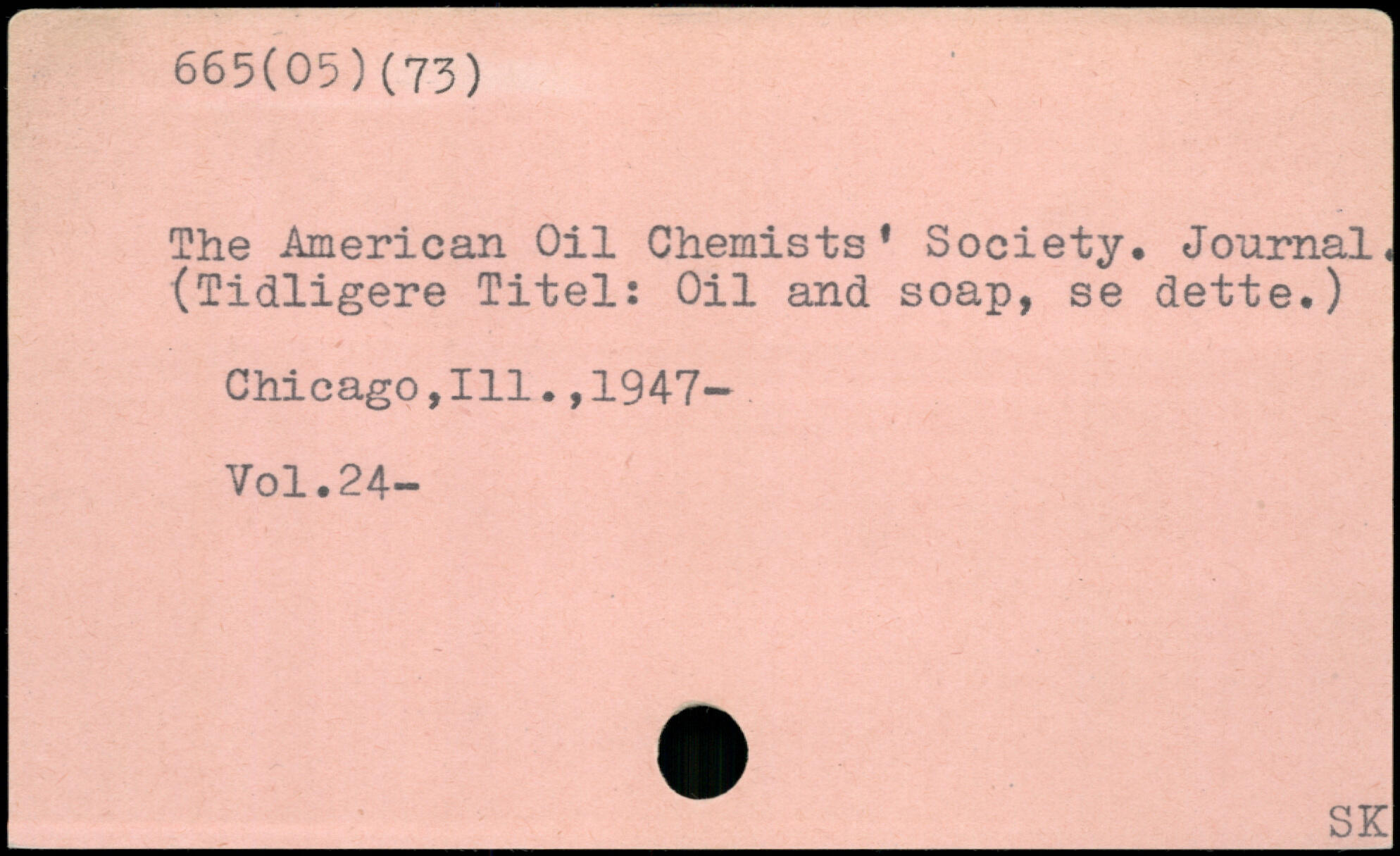 The American Oil Chemists. Society, Journals (Tidligere Titel: Oil and soap, se dette,) Chicago,111.,1947—