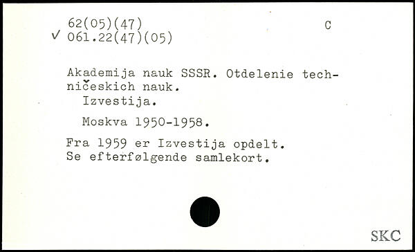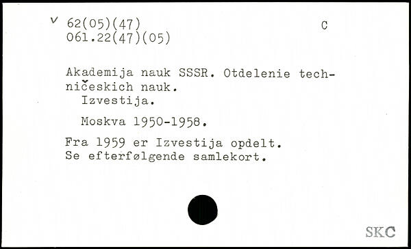 Akademija nauk SSSR. Otdelenie tech-niceskich nauk. Izvestija.