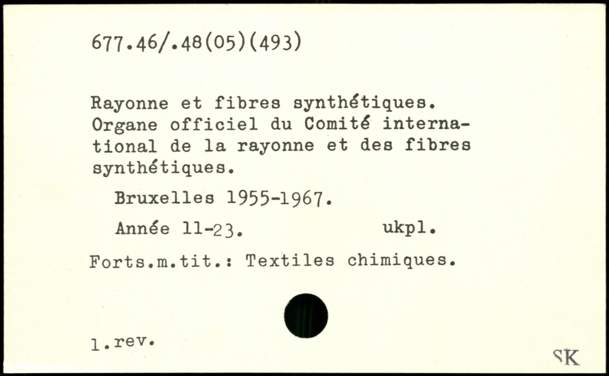 Rayonne et fibres synthétiques. Organe officiel du Comité international de la rayonne et des fibres synthétiques.