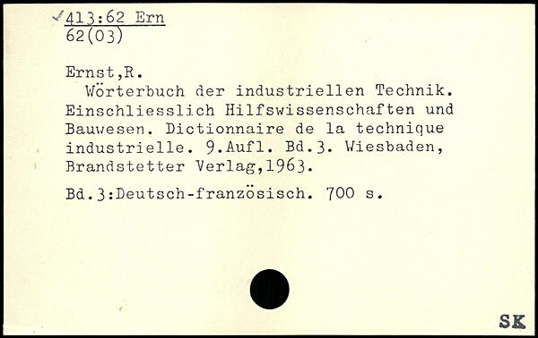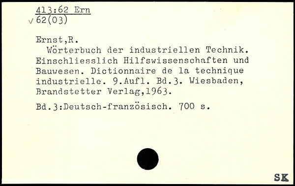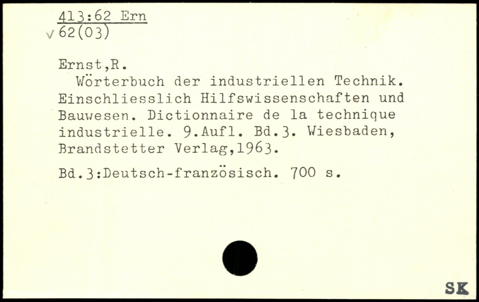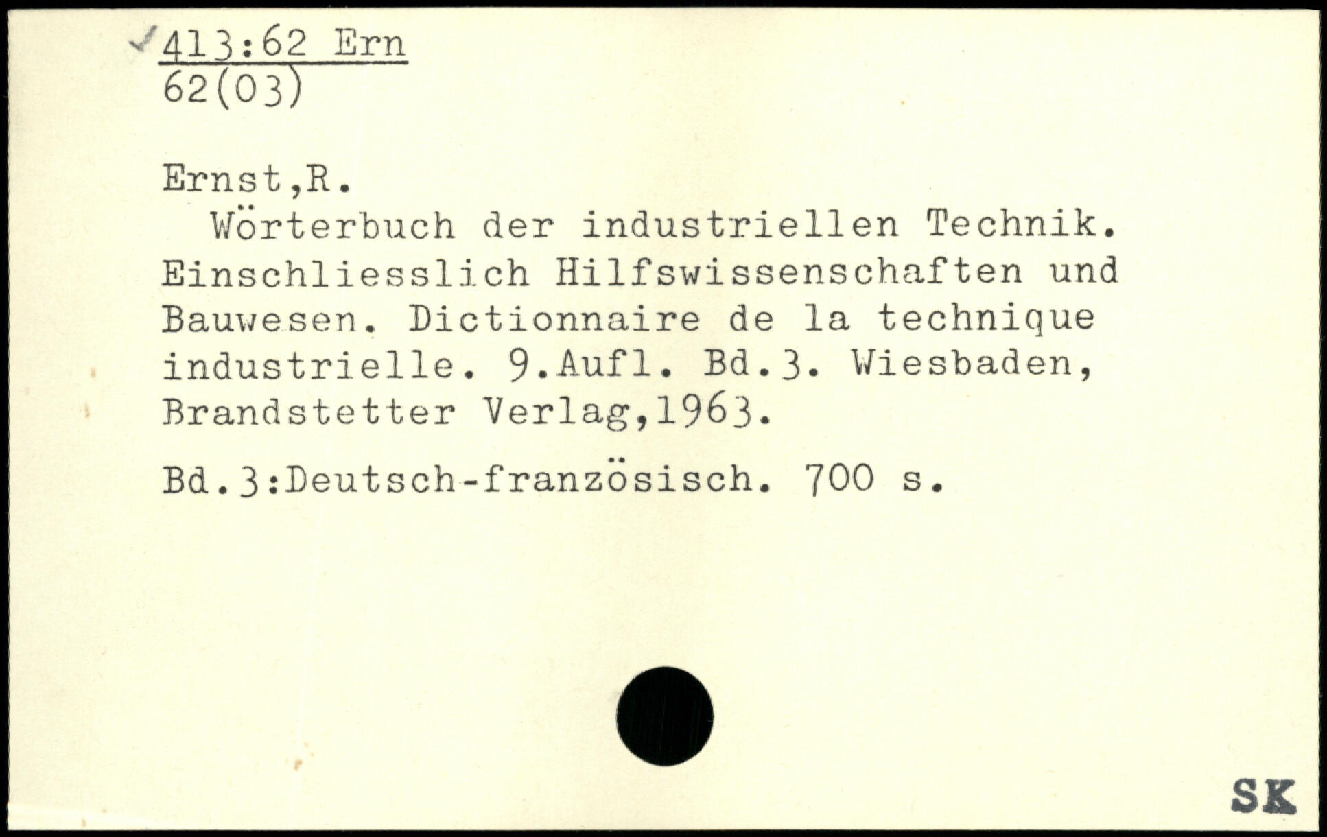 Wörterbuch der industriellen Technik. Einschliesslich Hilfswissenschaften und Bauwesen. Dictionnaire de la technique industrielle. 9-Aufl.
